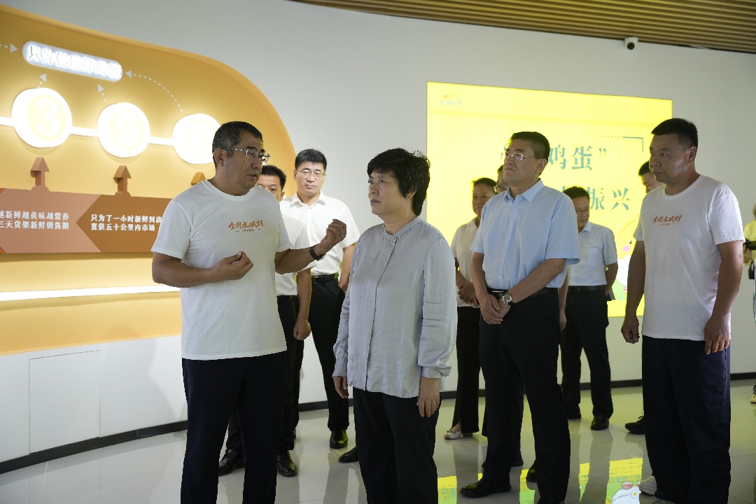 8月14日下午,區(qū)委書(shū)記秦蕾同志帶隊(duì)開(kāi)展畜牧及漁業(yè)項(xiàng)目專項(xiàng)調(diào)研,首站走進(jìn)長(zhǎng)田實(shí)業(yè)旗下易豐農(nóng)業(yè)超鮮蛋農(nóng)場(chǎng),實(shí)地考察蛋雞規(guī)?;腔垧B(yǎng)殖成果。區(qū)委辦公室主任李佃文、副區(qū)長(zhǎng)董鵬、區(qū)農(nóng)業(yè)農(nóng)村局局長(zhǎng)王興泉、濟(jì)陽(yáng)街道黨工委書(shū)記蘇磊等陪同調(diào)研,長(zhǎng)田實(shí)業(yè)董事長(zhǎng)張勇、常務(wù)副總經(jīng)理朱寶剛?cè)膛阃⒆鰠R報(bào)。