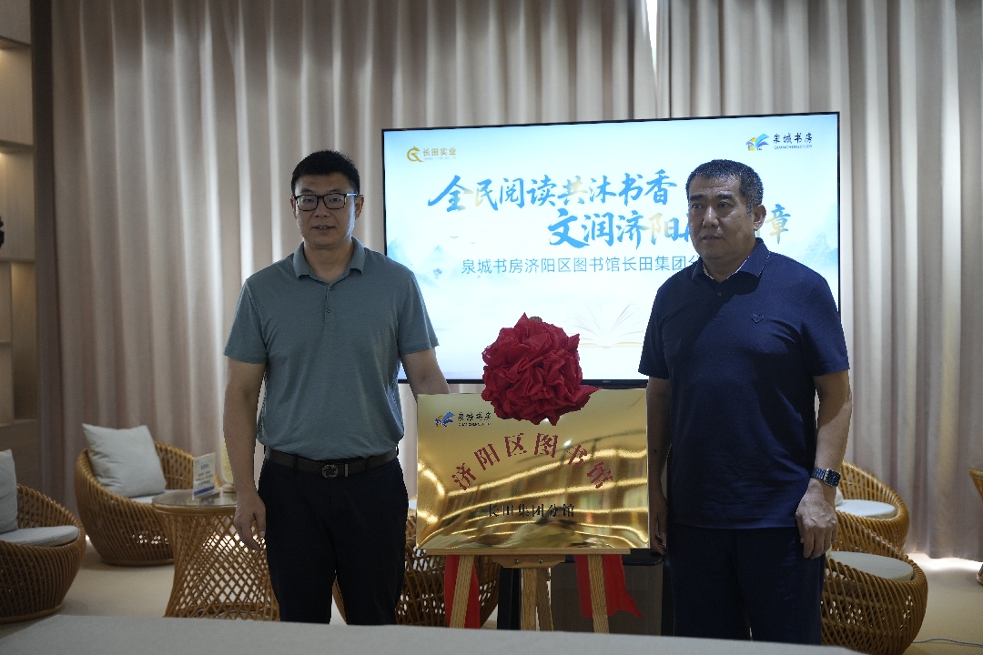 隨后,市圖書館紀(jì)委書記劉昱與張總共同為“泉城書房濟(jì)陽區(qū)圖書館長田集團(tuán)分館"揭牌,標(biāo)志著這座現(xiàn)代化書房正式向公眾開放。此次開館活動的成功舉辦,不僅為濟(jì)陽區(qū)增添了一處重要的文化地標(biāo),更彰顯了政府與企業(yè)協(xié)同推進(jìn)公共文化服務(wù)高質(zhì)量發(fā)展的創(chuàng)新成效。未來,長田集團(tuán)將持續(xù)與政府部門合作,通過舉辦文化展覽、非遺體驗(yàn)等活動,讓書房成為傳播濟(jì)陽文化、講好濟(jì)陽故事的重要窗口。