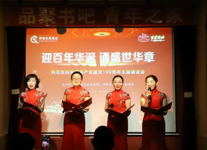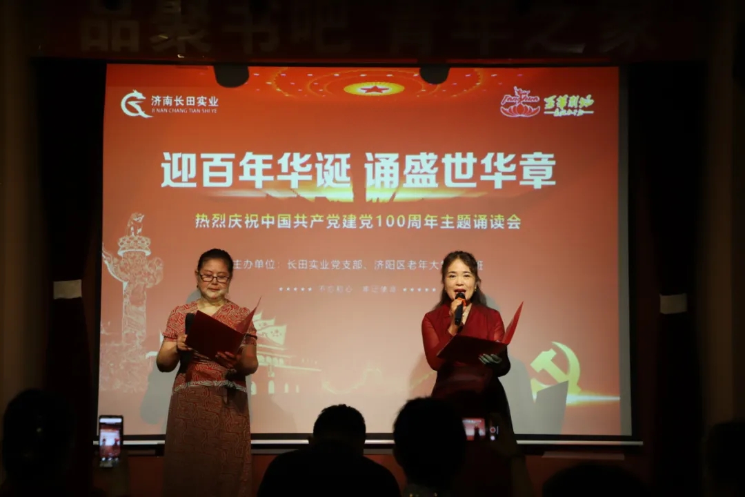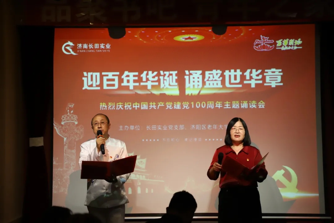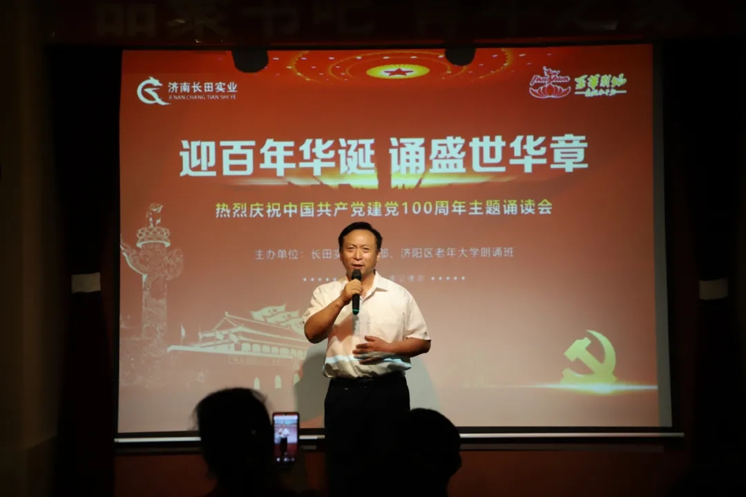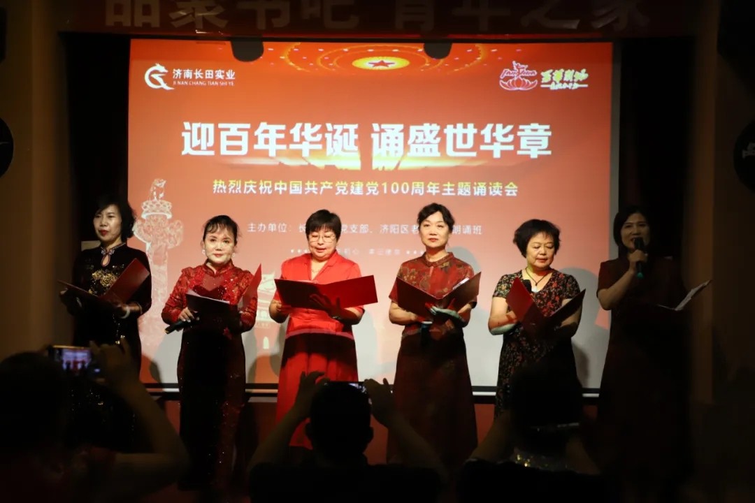 6月30日,為慶祝中國共產(chǎn)黨成立100周年,由濟陽區(qū)老年大學(xué)、長田實業(yè)主辦的詩歌朗誦分享會活動,在華百廣場四樓的品聚書吧舉行。濟陽區(qū)委老干部局二級調(diào)研員張連慶、濟陽區(qū)老年大學(xué)校長霍思剛、濟陽區(qū)老年大學(xué)朗誦班班長張凱、長田實業(yè)常務(wù)副總張玲出席活動。