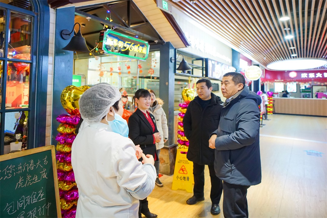 2月1日上午,董事長(zhǎng)張勇、餐飲事業(yè)部經(jīng)理李少峰、華百廣場(chǎng)副經(jīng)理舒方可,來到華百廣場(chǎng)、ET牛排餐廳、高第街56號(hào)餐廳、田小廚、品聚書吧進(jìn)行慰問,對(duì)員工在節(jié)日期間“舍小家 為大家”的精神表示贊揚(yáng),祝福員工家庭安康、虎虎生威。大家感謝董事長(zhǎng)的體恤關(guān)懷,表示將用心投入工作,篤行不怠。