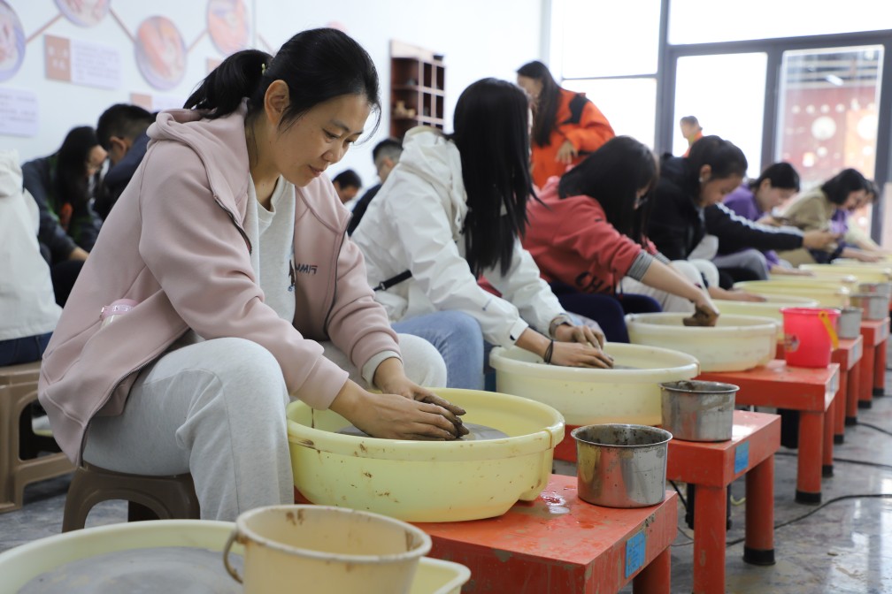 隨后,在省級(jí)非物質(zhì)文化遺產(chǎn)項(xiàng)目濟(jì)陽黑陶制作技藝代表性傳承人徐慶增老師的指導(dǎo)下,學(xué)員們親自體驗(yàn)了黑陶制作過程,他們學(xué)習(xí)了基本技藝——拉坯,親手制作出屬于自己的黑陶作品。通過這次體驗(yàn),學(xué)員們不僅對(duì)非遺文化有了更深刻的認(rèn)識(shí),也更加珍惜和尊重傳統(tǒng)手工藝。
