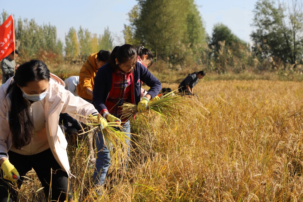 隨后,大家轉(zhuǎn)戰(zhàn)稻田,感悟“金秋”豐碩的“勞動(dòng)精神”,在稻谷飄香中摘取“為民”的碩果。割水稻是一項(xiàng)技術(shù)活,需要彎腰、揮刀、捆扎,每一個(gè)步驟都不能馬虎。盡管腰酸背痛,但大家依然咬牙堅(jiān)持,沒有一人退縮。在勞動(dòng)中,大家深刻體會(huì)到了農(nóng)民的不易,也更加堅(jiān)定了為鄉(xiāng)村振興貢獻(xiàn)力量的決心。