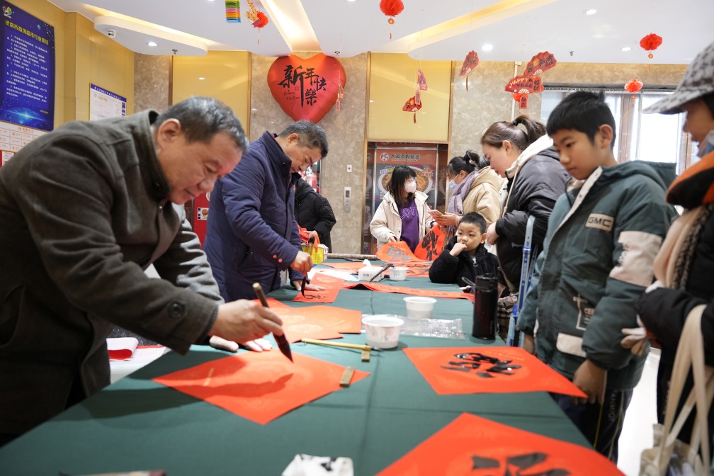 此外,在活動(dòng)現(xiàn)場(chǎng),濟(jì)陽(yáng)區(qū)總工會(huì)主持“送萬(wàn)福 進(jìn)萬(wàn)家”書法公益活動(dòng),邀請(qǐng)書法家現(xiàn)場(chǎng)寫春聯(lián)、贈(zèng)春聯(lián)、送“?!弊郑霉P墨丹青為廣大市民送上新春的美好祝福。