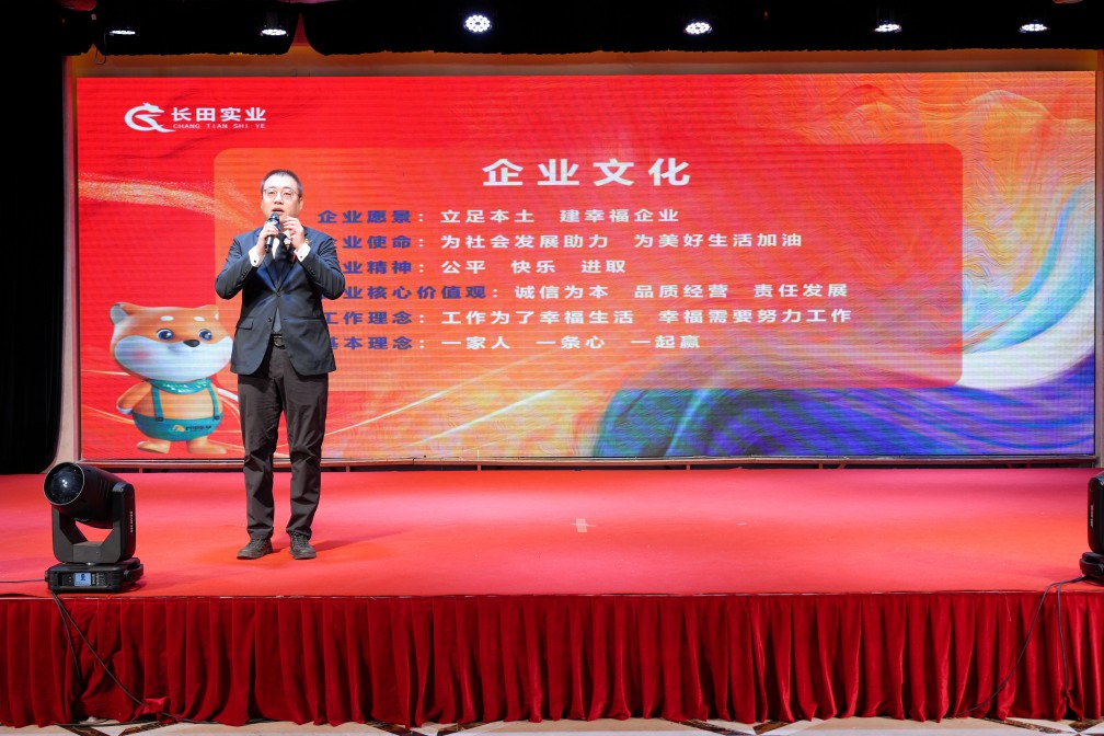 企業(yè)文化是企業(yè)持續(xù)向上發(fā)展的內(nèi)驅(qū)力,也是企業(yè)發(fā)展最大的軟實力。公司成立近二十年,企業(yè)文化持續(xù)迭代,構建了以企業(yè)愿景、企業(yè)使命、企業(yè)精神等為核心的完善的企業(yè)文化體系,奠定了企業(yè)文化建設的根基;以司歌、司徽、《長田人》期刊、長田講堂等為載體,推進企業(yè)文化落地生根。副總經(jīng)理成峻志帶領大家宣讀企業(yè)文化,以文化人,培根鑄魂,展示長田士氣。