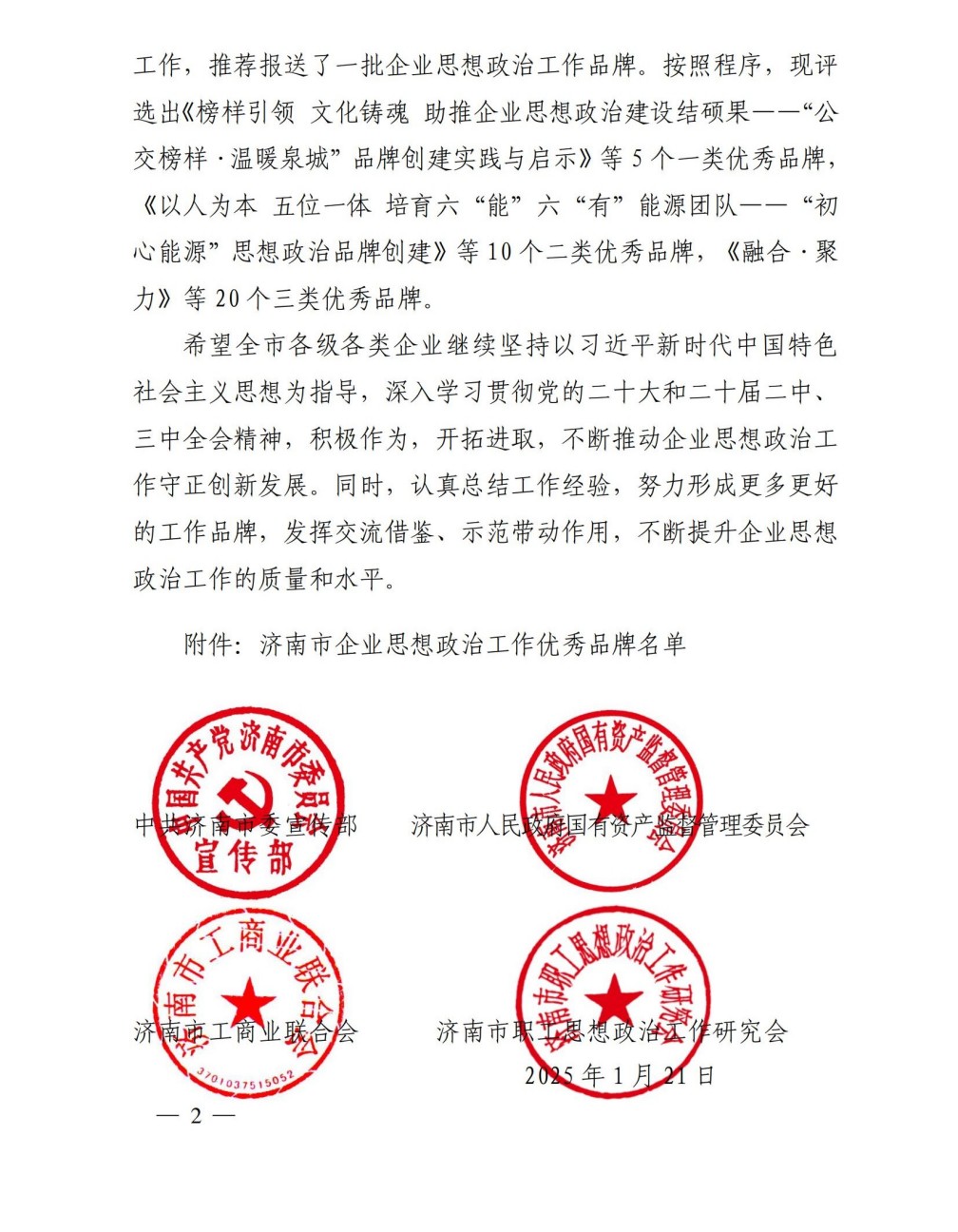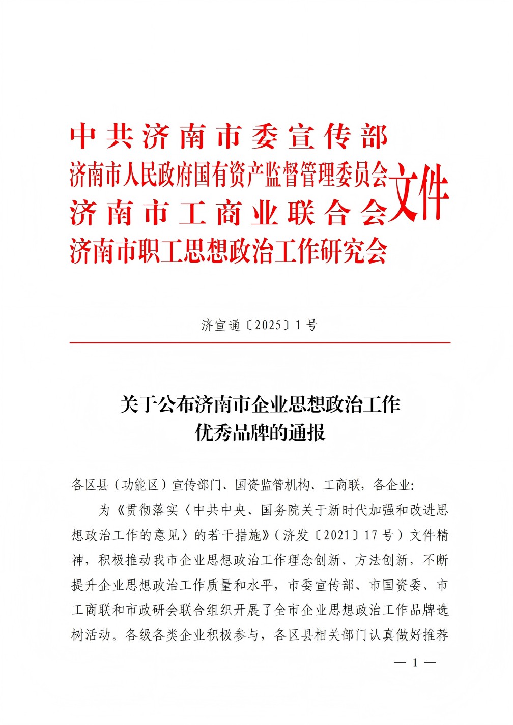 近期,市委宣傳部、市國資委、市工商聯(lián)和市政研會(huì)聯(lián)合組織開展了全市企業(yè)思想政治工作品牌選樹活動(dòng),濟(jì)南長田實(shí)業(yè)有限公司創(chuàng)建的思想政治工作品牌——“理耀長田”榮獲濟(jì)南市企業(yè)思想政治工作優(yōu)秀品牌。