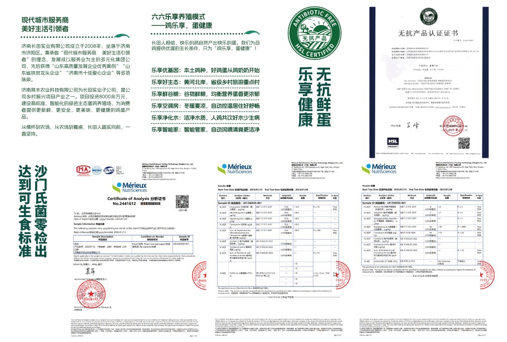 區(qū)別于傳統(tǒng)養(yǎng)殖模式,長田樂享創(chuàng)新構(gòu)建“六六樂享養(yǎng)殖體系”,以“優(yōu)基因、好生態(tài)、鮮谷糧、空調(diào)房、凈化水、智能家”打造高標(biāo)準(zhǔn)養(yǎng)殖體系。產(chǎn)品全程不添加激素和抗生素,配備蛋品清洗分級設(shè)備,嚴(yán)格把控品質(zhì),確保產(chǎn)品在消費(fèi)者手中的新鮮度和安全性。長田樂享超鮮蛋獲得無抗產(chǎn)品認(rèn)證。