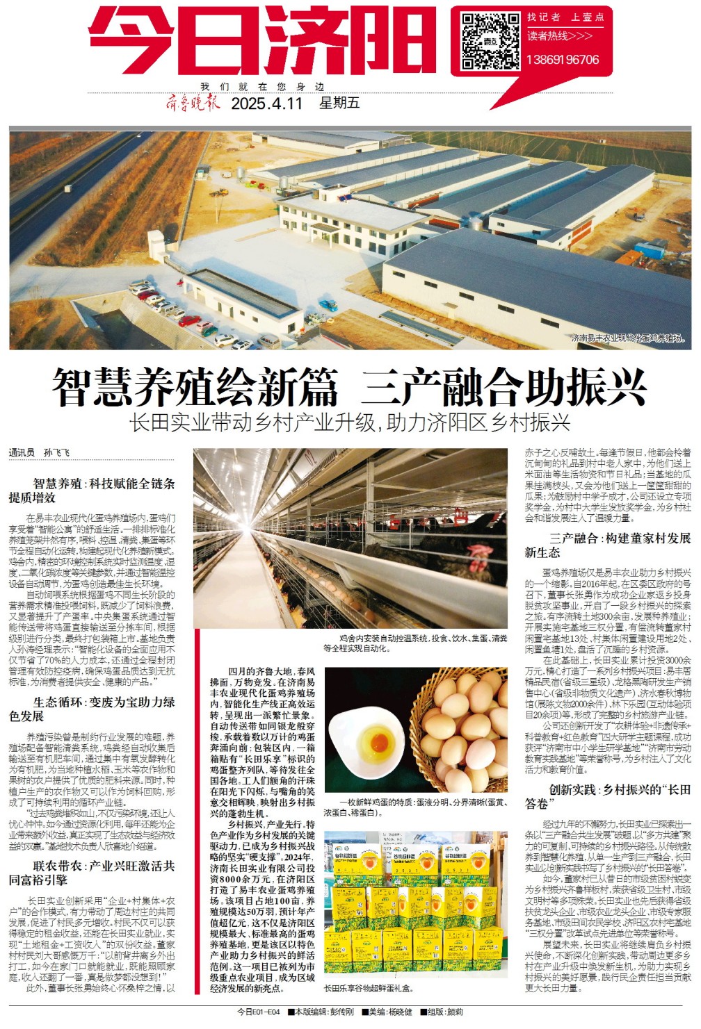 鄉(xiāng)村振興,產(chǎn)業(yè)先行。特色產(chǎn)業(yè)作為鄉(xiāng)村發(fā)展的關(guān)鍵驅(qū)動(dòng)力,已成為鄉(xiāng)村振興戰(zhàn)略的堅(jiān)實(shí)“硬支撐”。2024年,濟(jì)南長(zhǎng)田實(shí)業(yè)有限公司投資8000余萬元,在濟(jì)陽區(qū)打造了易豐農(nóng)業(yè)蛋雞養(yǎng)殖場(chǎng)。該項(xiàng)目占地100畝,養(yǎng)殖規(guī)模達(dá)50萬羽,預(yù)計(jì)年產(chǎn)值超億元,這不僅是濟(jì)陽區(qū)規(guī)模最大、標(biāo)準(zhǔn)最高的蛋雞養(yǎng)殖基地,更是該區(qū)以特色產(chǎn)業(yè)助力鄉(xiāng)村振興的鮮活范例,彰顯了“走在前、挑大梁”的責(zé)任擔(dān)當(dāng)。這一項(xiàng)目已被列為市級(jí)重點(diǎn)農(nóng)業(yè)項(xiàng)目,成為區(qū)域經(jīng)濟(jì)發(fā)展的新亮點(diǎn)。