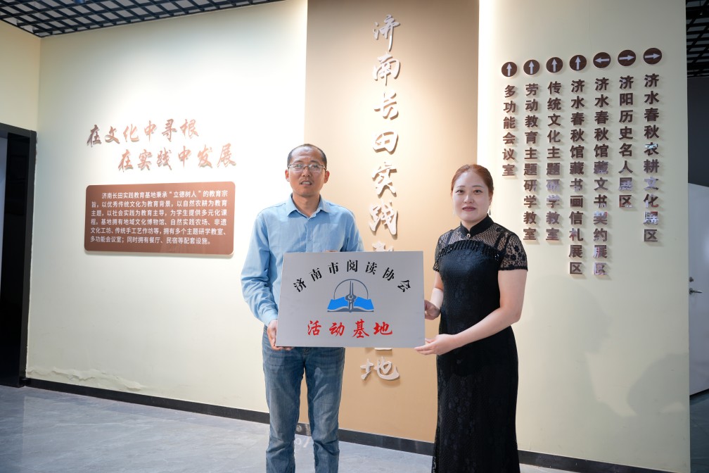 濟(jì)南市閱讀協(xié)會(huì)會(huì)長(zhǎng)何麗亞為長(zhǎng)田實(shí)踐教育基地授牌。長(zhǎng)田實(shí)踐教育基地被授予“濟(jì)南市閱讀協(xié)會(huì)活動(dòng)基地”的稱號(hào),這不僅是對(duì)基地的肯定,更是對(duì)社會(huì)責(zé)任的踐行。下一步,長(zhǎng)田實(shí)踐教育基地將繼續(xù)發(fā)揮閱讀協(xié)會(huì)活動(dòng)基地的示范作用,不斷創(chuàng)新閱讀推廣活動(dòng),豐富文化內(nèi)涵,讓更多的孩子在這里找到知識(shí)的樂(lè)趣,培養(yǎng)閱讀的習(xí)慣。同時(shí),基地也將加強(qiáng)與濟(jì)南市閱讀協(xié)會(huì)的合作,共同舉辦各類(lèi)閱讀活動(dòng),搭建起孩子們與書(shū)籍之間的橋梁,引領(lǐng)他們走進(jìn)書(shū)海,探索知識(shí)的奧秘。