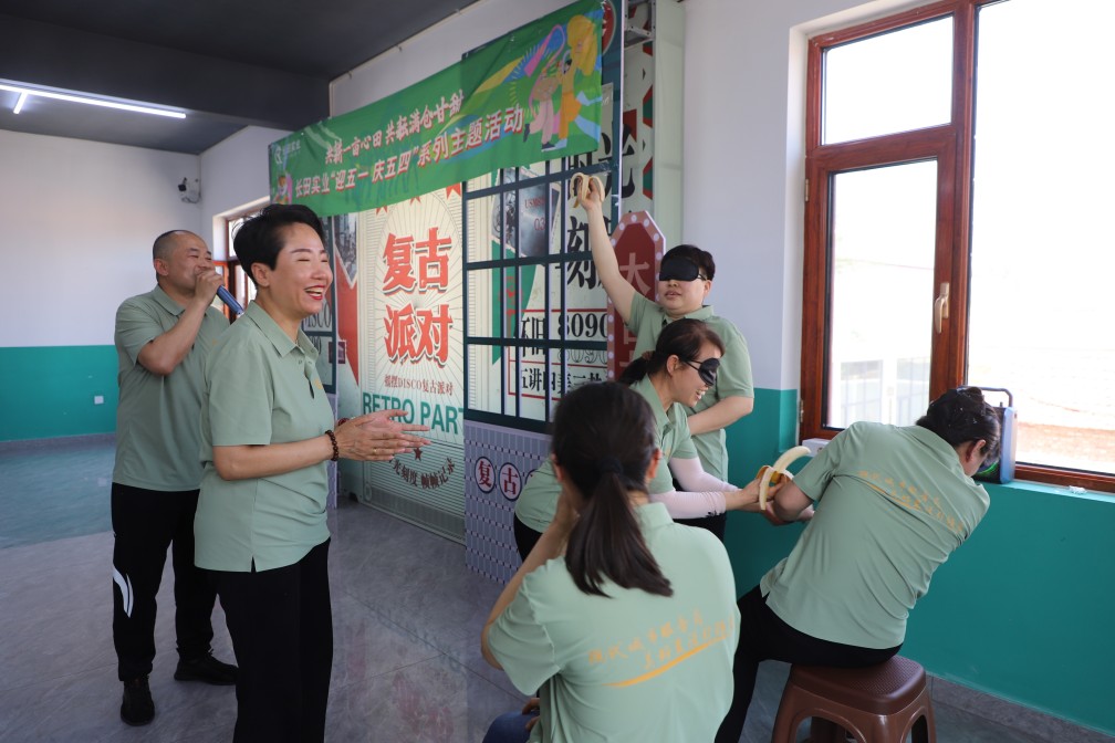 餐中設(shè)置的游戲環(huán)節(jié)更是激起了大家的參與熱情,笑聲和歡呼聲此起彼伏。“蒙眼吃香蕉”簡直就是歡樂的源泉!參與者兩兩一組,參與者戴上眼罩原地轉(zhuǎn)圈后迷失了方向,雙手小心翼翼地握著香蕉,一會兒往左偏,一會兒往右拐,那手忙腳亂的樣子,真是讓人忍俊不禁,坐著等待的同伴更是“心焦”,恨不得通過聲音指引隊(duì)友。有的摸索著找到隊(duì)友的嘴巴,有的卻誤打誤撞地碰到了隊(duì)友的鼻子,有的甚至直接越過隊(duì)友……現(xiàn)場爆發(fā)出一陣陣歡笑聲。最先吃完香蕉的隊(duì)員興奮得手舞足蹈,獲勝小組在臺下更是歡呼雀躍。