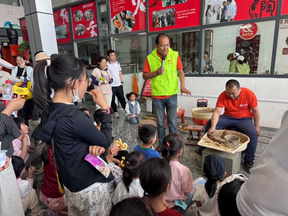 龍格黑陶藝術(shù)研究院內(nèi),孩子們的目光被古樸的黑陶器物深深吸引。省級(jí)非物質(zhì)文化遺產(chǎn)項(xiàng)目代表性傳承人徐慶增老師現(xiàn)場(chǎng)演示拉坯、雕刻技藝,手中的陶土仿佛被賦予了生命,在指尖的舞動(dòng)下逐漸成型。